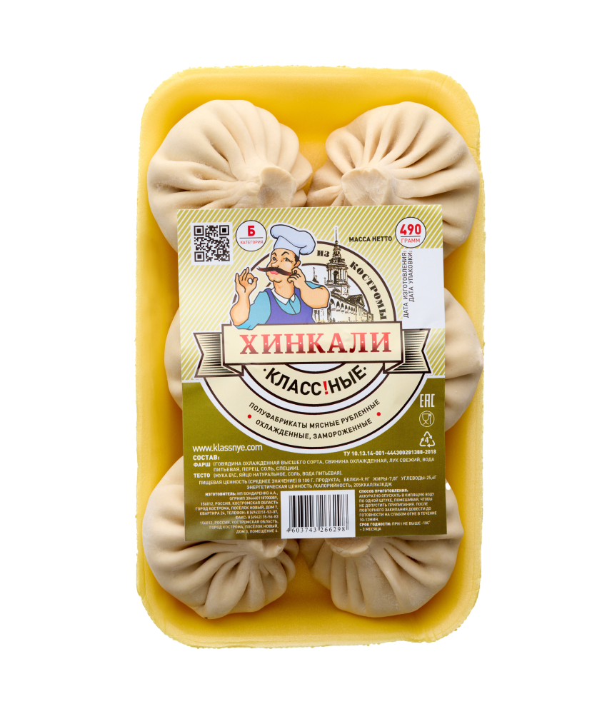 Начинка: говядина охлажденная высшего сорта, свинина охлажденная, лук свежий, вода питьевая, перец, соль, специи